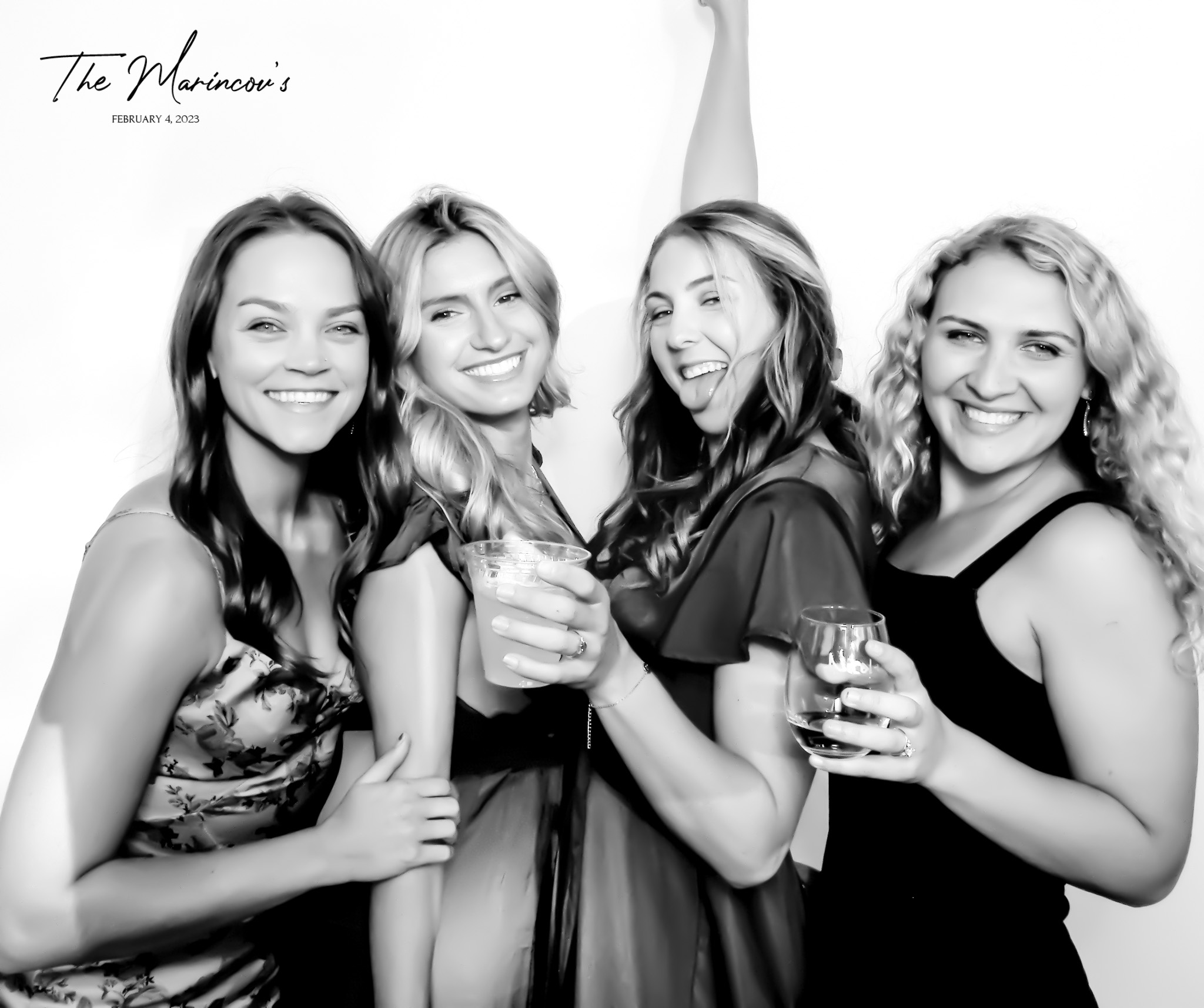 This is our Classy B&W Photo Booth Experience. It includes everything from Party Pix Booth PLUS It's enhanced by our glam skin smooth filter that makes everyone in the photo look fabulous.